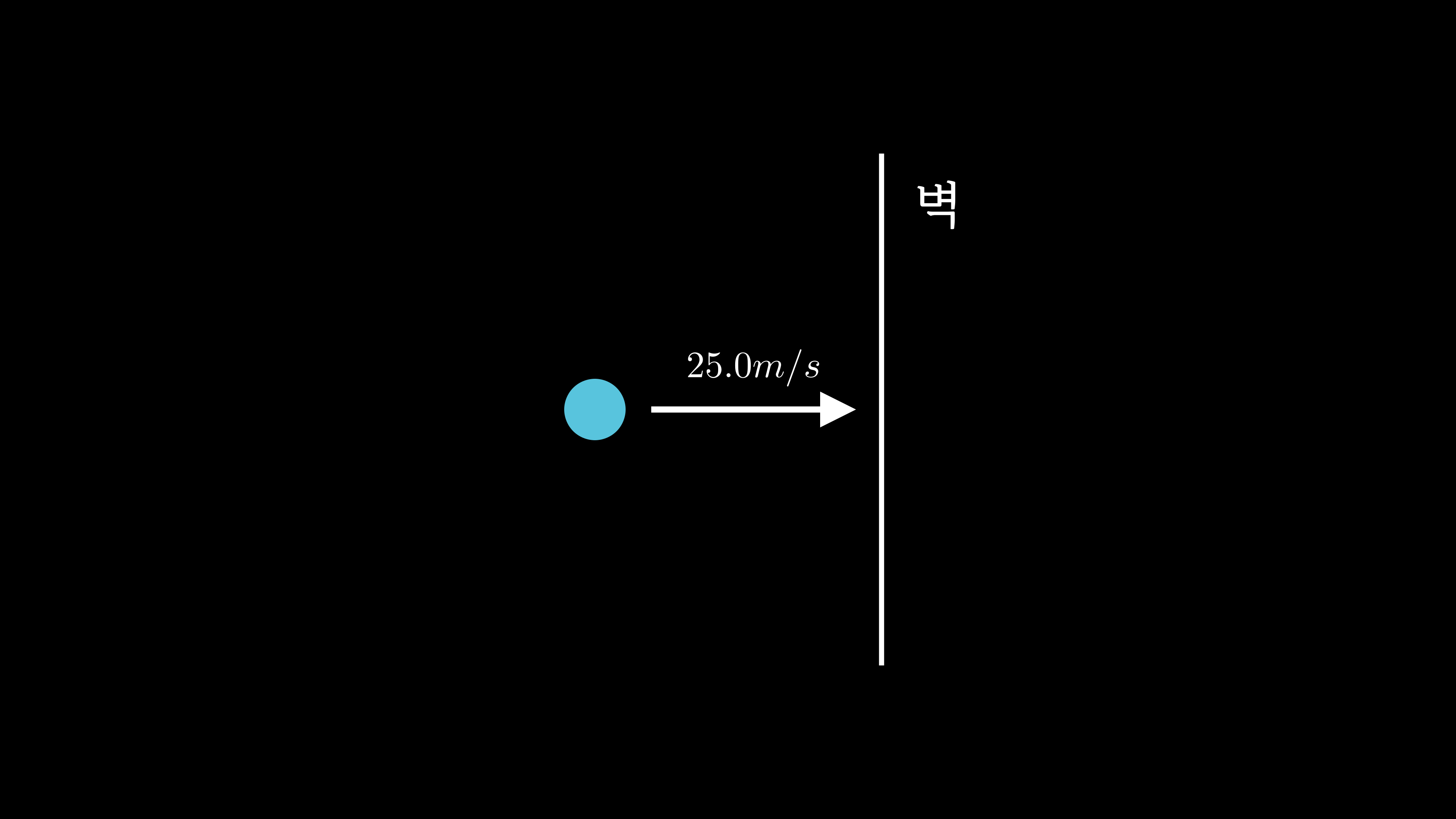 파란색이 공이고 파란 공이 25.0m/s의 속력으로 벽을 향해 움직이고 있습니다.