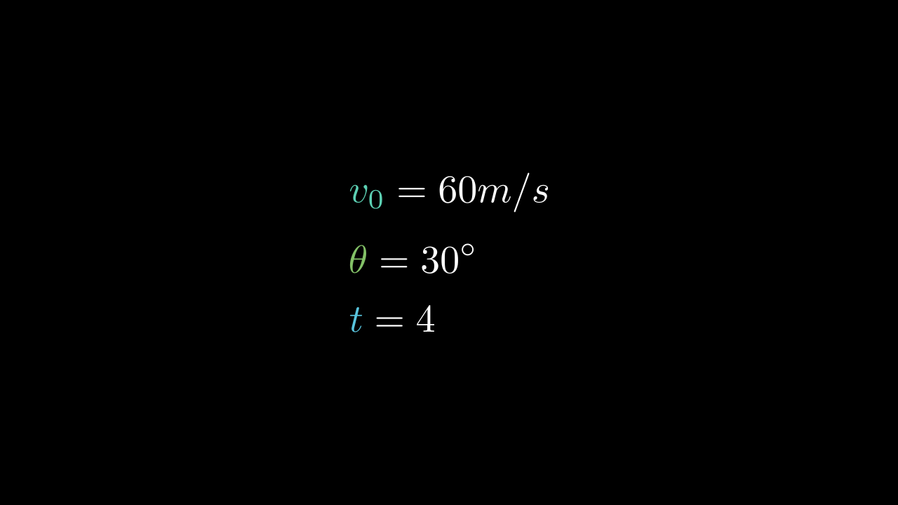 공식에 t, g, v0, 각도 값을