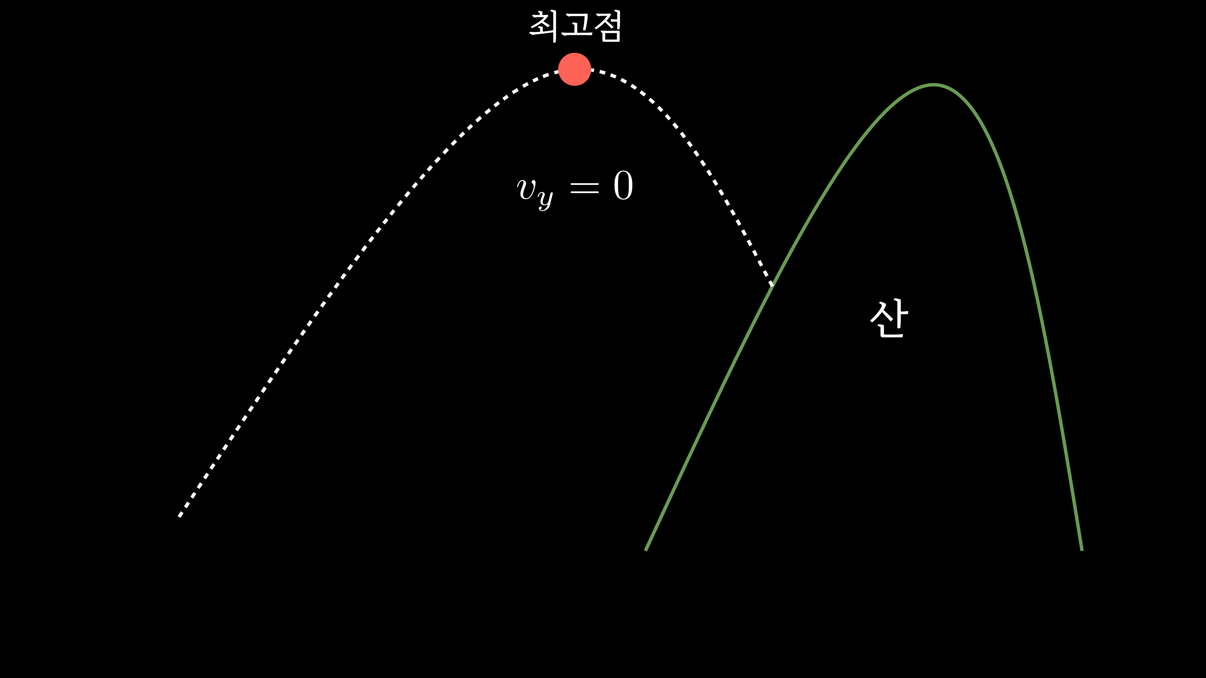 그럼 궤적의 최고점에서 포물체의