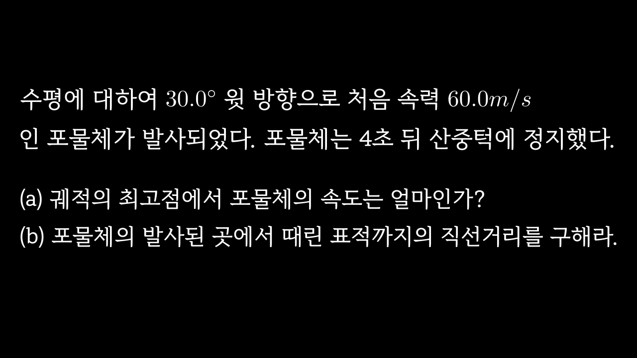 오늘도 Manim을 활용해서 일반물리학 연습문제를 풀어보겠습니다. 단원은 벡터와 이차원 운동입니다. 그럼 시작해 볼까요