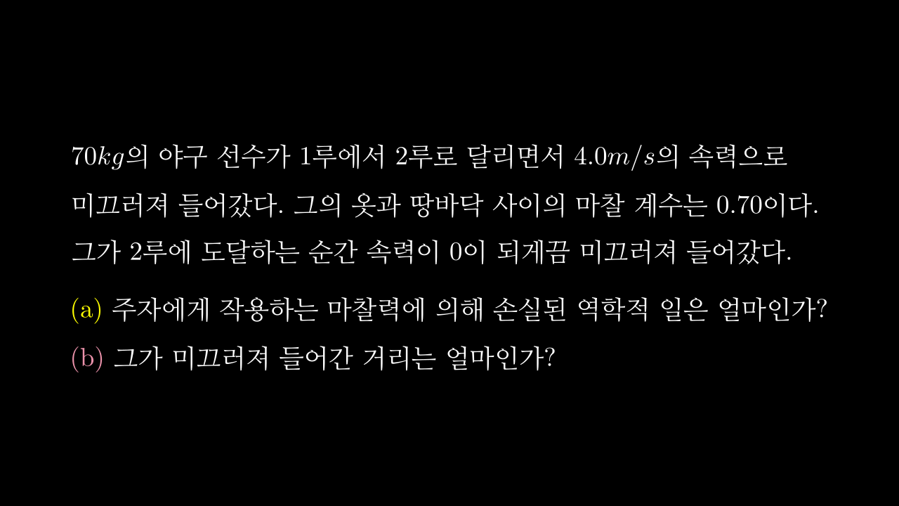 슬라이딩을 할 때 손실된 운동에너지의 양과